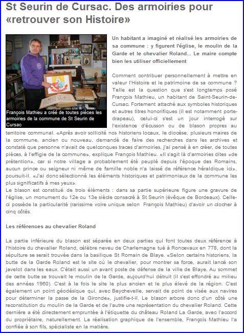 Article de presse Haute Gironde du 15/01/2010, sur le site du journal.