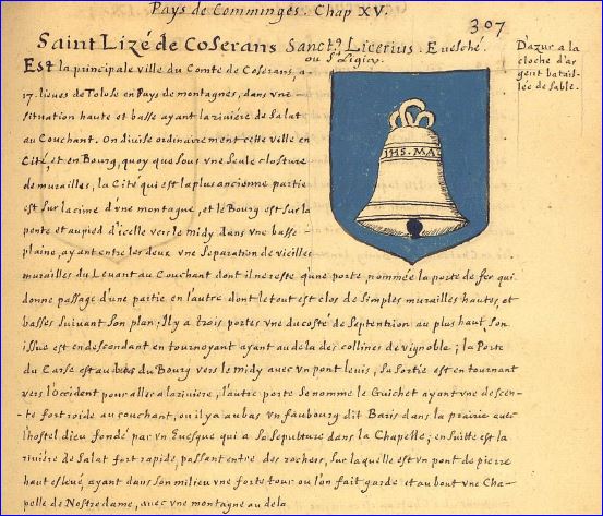 Armorial de Pierre de La Planche, 1669. La description des provinces et villes de France, extrait. Bibliothèque du Musée Condé de Chantilly.