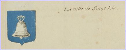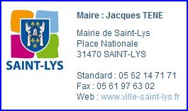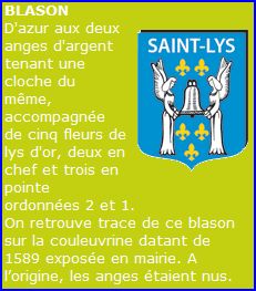 La ville de Saint-Lys, porte d’azur a une cloche d’argent avec cinq fleurs de lys“.