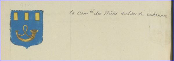 D'azur au huchet d'or surmonté de trois billettes du même rangées en chef.