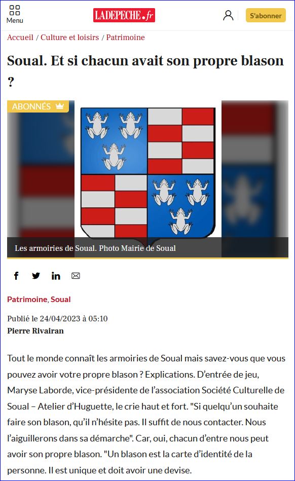 Article de presse La Dépêche du Midi du 24 avril 2023 (site du journal).