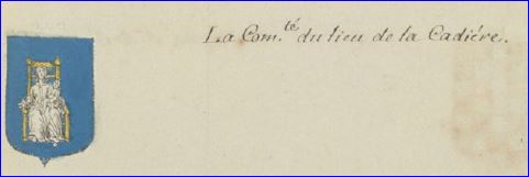 D'azur à Notre Dame d'argent assise sur une chaise à dossier d'or.