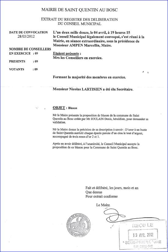 Extrait du registre des délibérations du 4 avril 2012.