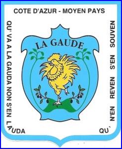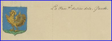 D'azur au coq essorant d'or posé sur une terrasse de sinople.