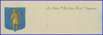 D'azur à Saint-Jacques vêtu en pèlerin d'or.