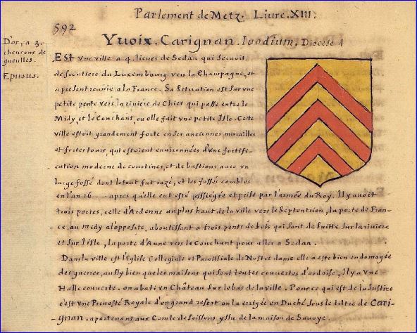 (2) (1321) Écartelé: aux 1er et 4e d'argent au lion de gueules, la queue fourchue et passée en sautoir, aux 2e et 3e burelé d'argent et d'azur au lion de gueules.