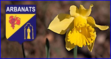Taillé: au 1er d'or à la grappe de raisin feuillée de gueules, au 2e d'azur à la statue de sainte Radegonde d'or sous un portique trilobé du même; au chef d'azur chargé de l'inscription « ARBANATS » en lettres capitales d'argent.