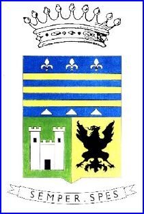 Coupé: au 1er d'azur à la tierce d'or accompagnée de trois fleurs de lis d'argent rangées en chef et de trois triangles du même rangés en pointe, au 2e parti au I de sinople au château d'argent, maçonné, ouvert et ajouré de sable, au II d'or à l'aigle de sable.