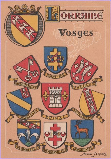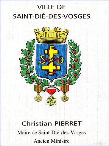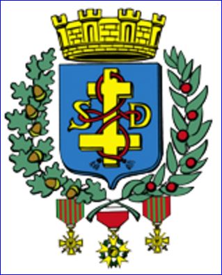 (1608) D'azur à la croix de Lorraine d'or côtoyée des lettres capitales du même S à dextre et D à senestre, le tout lié et entrelacé d'un ruban de gueules.