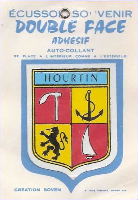 Écartelé: au 1er de gueules au hapchot [outil de gemmeur] d'argent, au 2e d'or à l'ancre de sable avec sa gumène du même, au 3e d'or au lion à la queue léopardée de sable, au 4e de gueules au voilier d'argent vu de front.