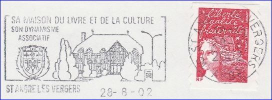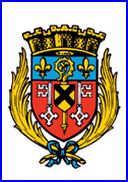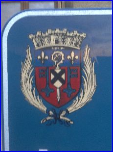 (1960) De gueules au chef cousu d'azur, à la crosse d'or brochante, à l'écusson du même au sautoir de sable brochant en abîme sur le tout, accosté de deux clés adossées aux anneaux en losange pommetés d'argent, le chef chargé de deux fleurs de lis d'or accostant la volute de la crosse.