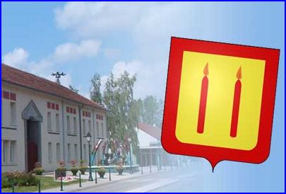 D'or à deux bougies enflammées de gueules, à la bordure du même.