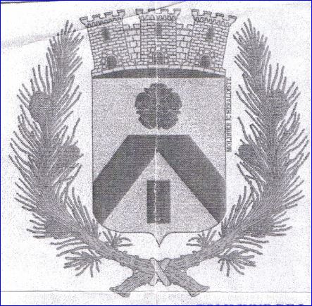 (2002) D'argent au chevron écimé surmonté d'une rose et soutenu d'une billette, le tout de sable.