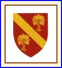 De gueules à la bande d'or accompagnée de deux pieds de céleri arrachés du même.