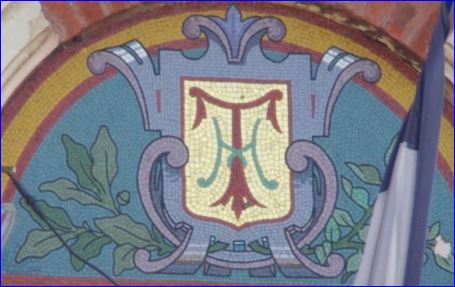 D'or au tau de gueules entrelacé avec une lettre H de sinople.