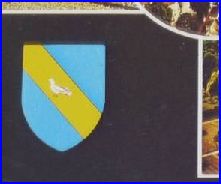 D'or à la bande d'azur chargée en coeur d'un rossignol d'argent.