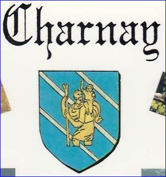 D'azur à trois filets en bande d'argent, à Saint Christophe d'or issant aux trois-quarts et brochant sur le tout.