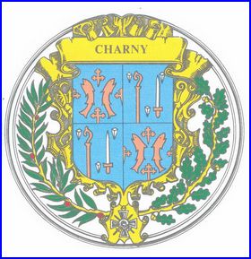 (1981) Écartelé: aux 1er et 4e d'azur semé de croisettes recroisetées au pied fiché d'or, à deux bars adossés de même, aux 2e et 3e d'azur à la crosse épiscopale d'or à dextre et l'épée d'argent garnie d'or à senestre, accompagnées de trois clous de la Passion d'argent.