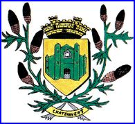 D'or au château de quatre tours de sinople, posé en perspective, ouvert et ajouré d'argent, coulissé de sable.