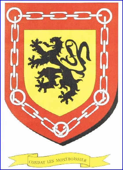 D'or au lion de sable; à la bordure de gueules chargée d'une chaine d'argent posée en orle.