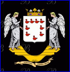 L'orle de merlettes est empruntée aux De Gaudechart, famille originaire de