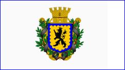 D'or au lion couronné de sable, à la bordure engrêlée d'azur.