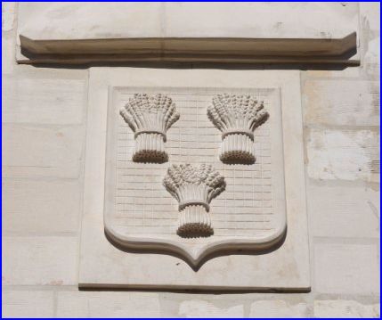 Blason sculpté sur la façade de l'église. (Photo Jacques Dulphy, 2012)