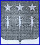D'azur à trois lézards d'argent posés en pal et rangés en fasce; au chef cousu de gueule chargé de trois étoiles d'or.
