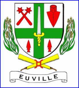 (2011) D'argent à la croix abaissée de sinople, chargée d'une épée d'argent garnie d'or et cantonnée en chef à dextre de deux masses d'armes passées en sautoir, à senestre d'un soc d'araire, en pointe de deux phéons, le tout de gueules.