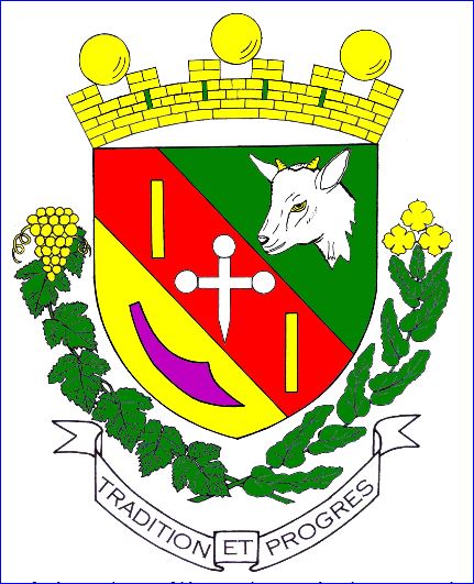 (2007) Tranché: au 1er de sinople à la tête de chevreau arrachée d'argent, allumée et accornée d'or, au 2e d'or au soc de charrue de pourpre posé en bande; à la bande de gueules chargée d'une croisette pommetée au pied fiché d'argent accompagnée de deux vergettes alésées d'or, brochant sur la partition.