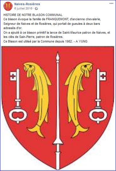 (1982) De gueules à la lance de tournoi d'argent mouvant de la pointe accostée de deux bars adossés d'or, flanqués de deux clefs adossées d'argent.