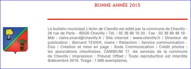 Bulletin municipal l'écho de chevilly No 1, 2015, p. 2.