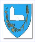 D'azur à la chapelle d'argent, soutenue d'une branche de vigne fruitée et pamprée d'or, et d'un épi de blé tigé et feuillé du même, les tiges passées en sautoir en pointe.