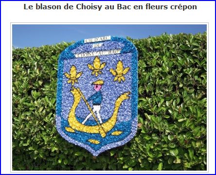 Parti d'azur et de gueules; à l'écusson chargé d'un bac avec son marinier, voguant sur une rivière mouvant de la pointe, le tout au naturel et surmonté de trois fleurs de lis d'or rangées en chef.