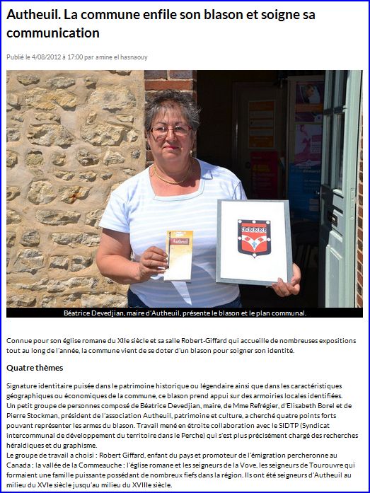 Article du journal Le Perche du 4 août 2012, sur le site de journal.