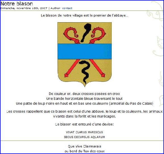 Devise: « vivat clarus mariscus secus decursus aquarum » (que vive Clairmarais au bord du flux des eaux).