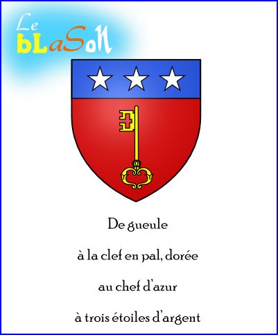 De gueules à la clef d'or ; au chef cousu d'azur chargé de trois étoiles d'argent.