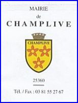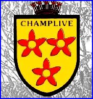 D'or à trois quintefeuilles de gueules surmontées de l'inscription « CHAMPLIVE » en lettres capitales de sable.