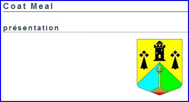 (1993) Parti d'azur et de sinople, au calvaire de trois croisettes d'or perronné de quatre degrés du même, maçonnés de sable, posé sur une terrasse de gueules et brochant sur la partition; mantelé d'or chargé au point du chef d'une tour couverte de sable, ouverte et ajourée d'or, et de deux mouchetures d'hermine de sable en flancs.