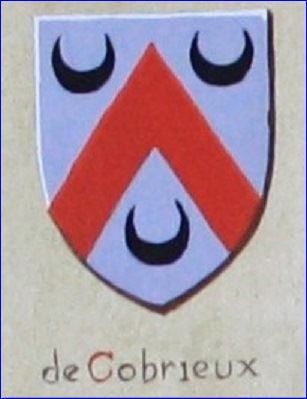 D'argent au chevron de gueules accompagné de trois croissants de sable.