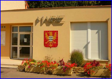 De gueules à l'aigle d'or chargée d'un écusson fuselé d'argent et de sable.