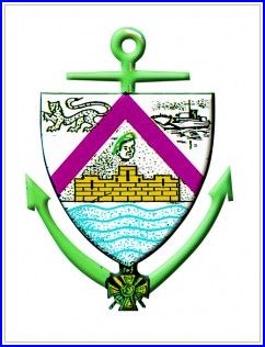(1989) D'argent au chevron haussé de gueules accompagné en chef dextre d'un léopard, en chef senestre d'un cuirassé, le tout de sable, en pointe d'une forteresse d'or maçonnée de sable, terrassée du champ, sommée d'une tête de soldat en ombre du même, posée de face et coiffée d'un béret de sinople; à la mer d'azur.