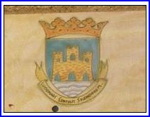 D'azur au château d'or, ouvert et ajouré du champ, maçonné de sable, soutenu d'une mer d'argent ombrée d'azur.