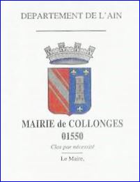 (1993) Parti: au 1er de gueules à la bande d'argent côtoyée de deux cotices du même, au 2e d'azur à la tour du Fort de l'Écluse d'argent maçonnée de sable accompagnée de trois fleurs de lis d'or.