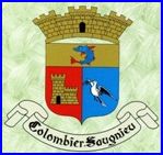 Parti: au 1er de gueules à la tour avec son avant-mur senestre d'or, ouverte et maçonnée de sable, au 2e d'azur à la colombe essorante d'argent tenant en son bec un rameau d'olivier du même; le tout sommé d'un chef d'or chargé d'un dauphin d'azur barbé, crête, lorré, oreillé et peautré de gueules.