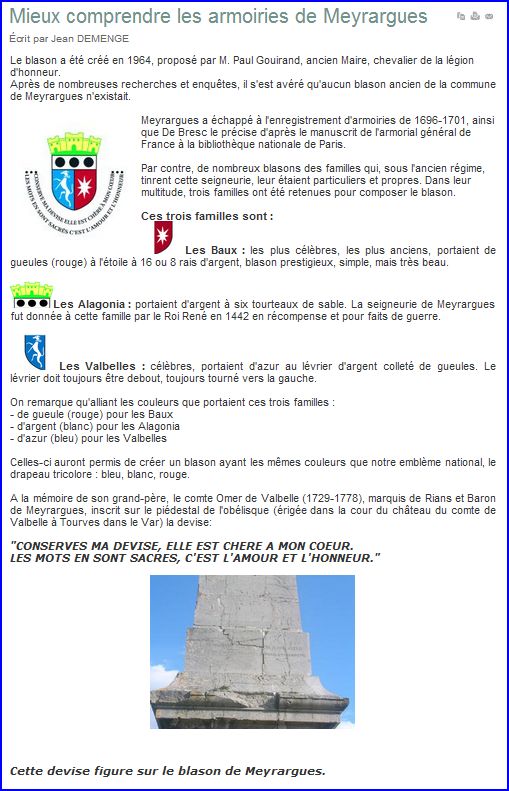 Explication du blason sur le site de la commune, 2012.
