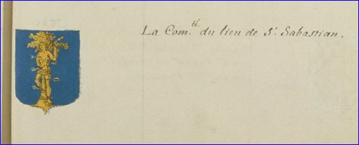 D'azur à saint Sébastien de carnation, au pagne d'argent, attaché à un arbre d'or, percé de cinq flèches d'argent.