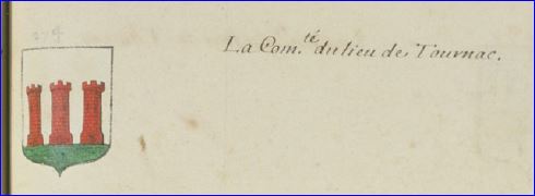 D'argent à trois tours de gueules rangées sur une terrasse de sinople.