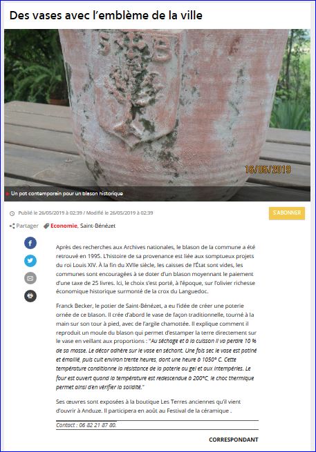 Article de presse Midi Libre du 26 mai 2019, (site du journal).