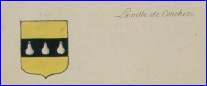 D'or à la fasce de sable chargée de trois poires d'argent.